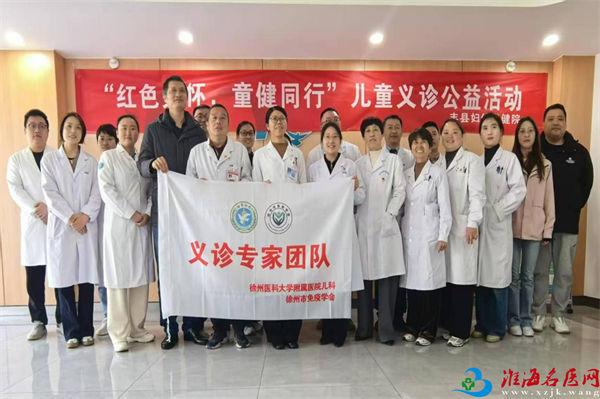 在第37个爱国卫生月来临之际,2025年4月1日,儿科支部书记关凤军带领儿科赵光、杨倩倩、雍曾花等10人专家团队,联合徐州市免疫学会、丰县妇幼保健院,在丰县共同举办“红色关怀 童健同行”健康义诊活动。此次义诊是2025年儿科系列义诊活动的开篇活动,通过多学科诊疗、健康科普、党建联建等形式,提供“筛查-诊断-干预”全链条服务,为基层儿童健康事业注入了强大动力。