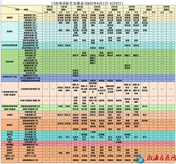 徐州市第七人民医院端午节放假安排及门诊坐诊信息一览表(6月1日-6月30日)