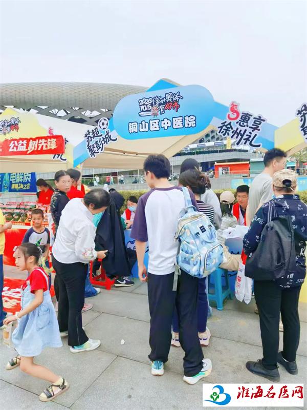 10月5日晚上,苏超徐州队主场迎战泰州队的比赛在徐州市奥体中心——鸟巢体育场激情上演。赛场内,球员们奋力拼搏;赛场外,一抹独特的“中医红”成为观众们驻足的焦点——铜山区中医院在这里开展了一场别开生面的中医药志愿服务活动。
