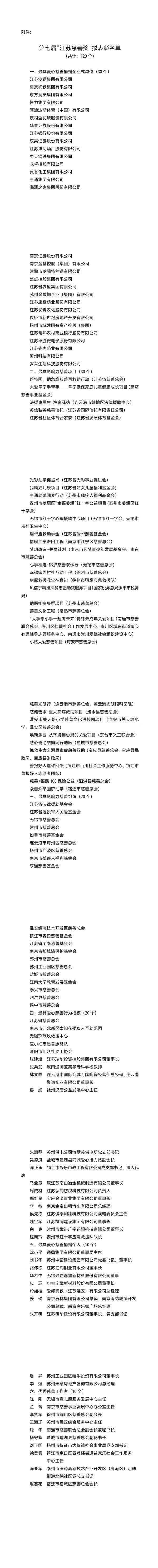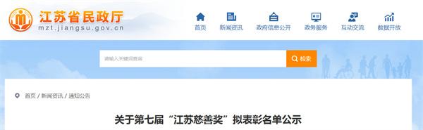 关于第七届“江苏慈善奖”拟表彰名单公示