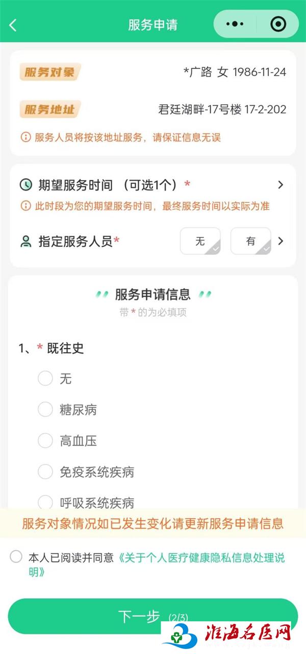 3.再次点击“上门护理”