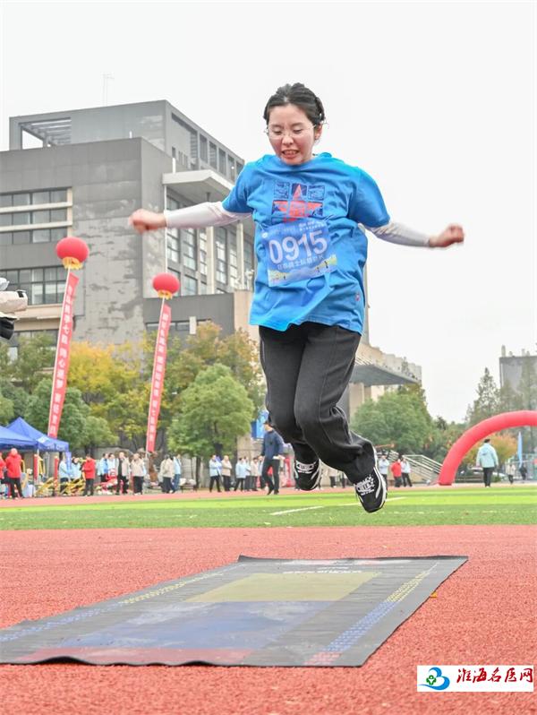 立定跳远场地内,运动员们屈膝、摆臂、蹬地、跳跃,每一个动作都干脆利落,全力向着更远的距离冲刺。