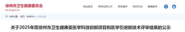 关于2025年度徐州市卫生健康委医学科技创新项目和医学引进新技术评审结果的公示