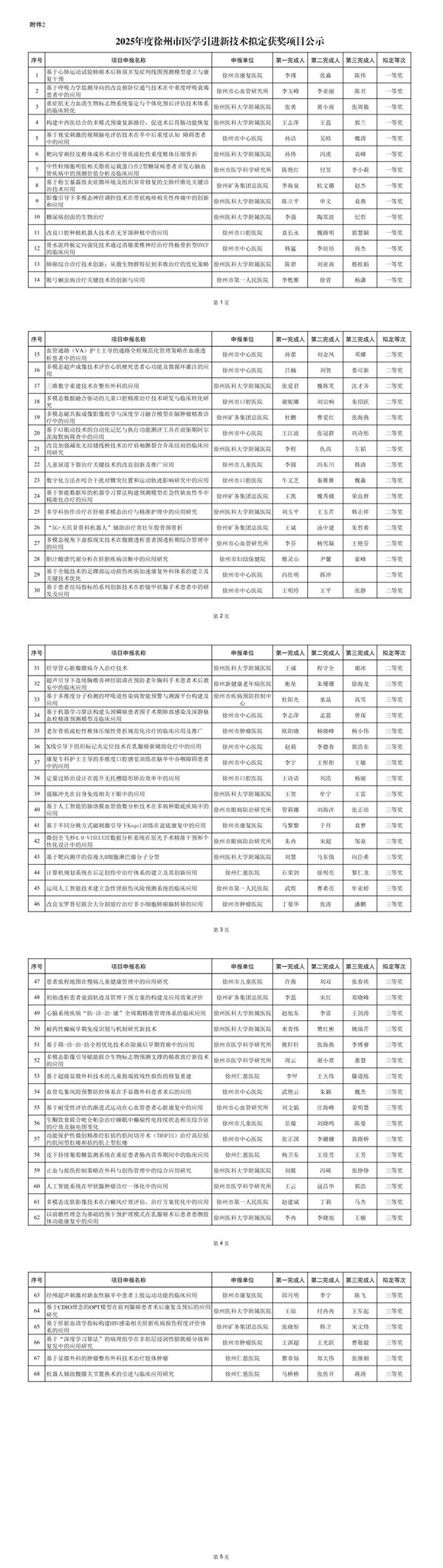 2. 2025年度徐州市卫健委医学引进新技术拟定获奖项目公示