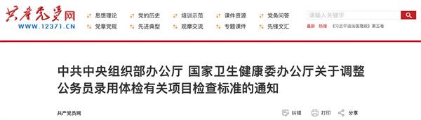 中共中央组织部办公厅国家卫生健康委办公厅关于调整公务员录用体检有关项目检查标准的通知