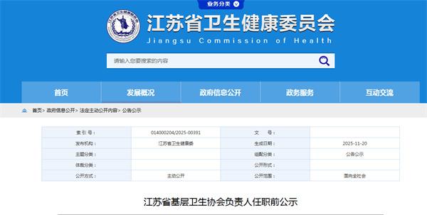 公示时间为:2025年11月21日至11月27日(5个工作日)。对公示对象如有异议,请于公示期间与江苏省卫生健康委员会人事处联系。联系地址:南京市中央路42号(邮编:210008);联系电话:025-83620621,传真:025-83620627,信箱:jssrsc@163.com。