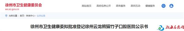根据徐州云龙熊猫竹子口腔医院有限公司提交的《医疗机构执业登记申请书》,我委受理了徐州云龙熊猫竹子口腔医院的执业登记申请,已进入审批程序,按照医疗机构审批管理相关要求,现将拟批准登记医疗机构基本情况公示如下: