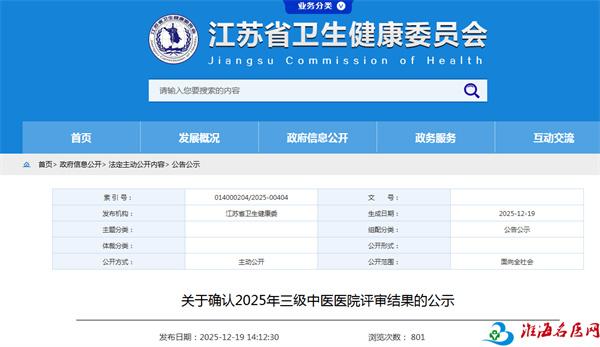 2025年三级中医医院评审结果公示!涉及徐州1家