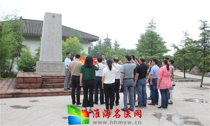 在运河支队抗日纪念碑前,在鲜红的党旗下,医科大学机关党委第九支部李元栋书记主持该阶段活动,附院第三总支第六支部陶常波书记带领大家重温入党誓词,医科大学人事处杜刚处长结合本次义诊活动、参观运河支队抗日纪念馆以及学习贯彻党的十八届六中全会精神为大家上了一堂党课,他从三个方面讲起,一是牢记历史,不忘根本;二是践行宗旨,不忘初心;三是立足岗位,多做贡献。他希望我们每一个党员不忘入党初心,从自身岗位做起,学好党章党规、习总书记的系列重要讲话精神,做一个合格党员,用实际行动践行全心全意为人民服务,为共产主义奋斗终身的入党誓言。