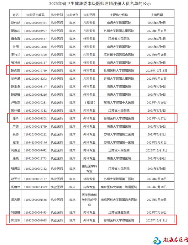 2025年省卫生健康委本级医师注销注册人员名单的公示