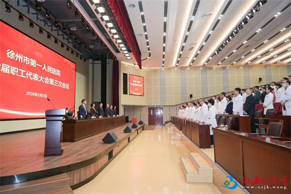 2月5日,徐州市第一人民医院第六届职工代表大会第三次会议在庄严的国歌声中拉开帷幕。院领导班子成员,来自全院临床、医技、行政、后勤的百余名职工代表齐聚一堂,依法行使民主权利,共商医院发展大计。党委委员、纪委书记马雪岩主持会议。