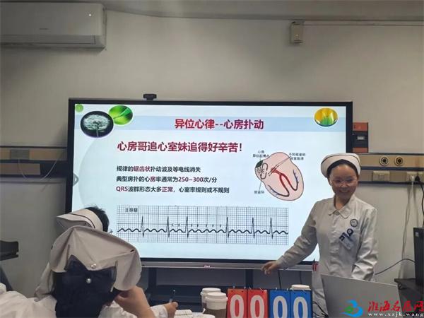 她用生动的比喻将复杂的心电图知识形象化:窦性心动过速就像“一见钟情”,心率>100次/分;而窦性心动过缓则是“白头到老”,心率<60次/分。她还详细讲解了房性早搏、室性早搏、心房颤动、心室颤动等常见心律失常的心电图特征,以及急性心肌梗死的ST段变化识别要点。