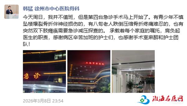 这场深夜急诊手术,是3月8日(周日)韩猛当天完成的第四台急诊手术。当日他的团队应急响应,接连开展多台骨科急症手术,守护每一位急症患者的健康。