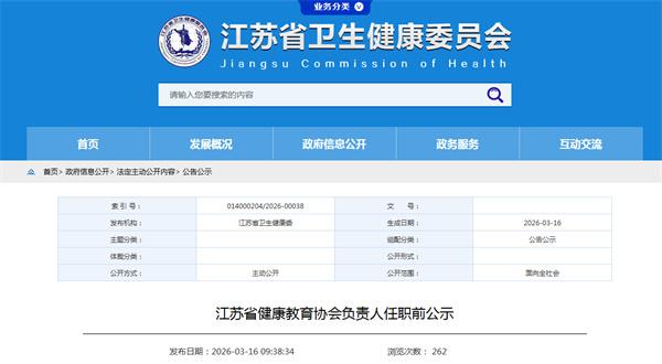 江苏省卫生健康委员会发布最新任职前公示