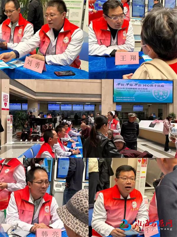 今年4月15日—21日是第32个全国肿瘤防治宣传周。今天上午,徐州市中心医院在本部门诊一楼大厅举办了肿瘤防治健康义诊。副院长、肿瘤学学科带头人吴小进,放疗科、肿瘤内科医护团队现场坐诊,为市民提供专业咨询、病情解读、筛查建议及规范化诊疗指导。