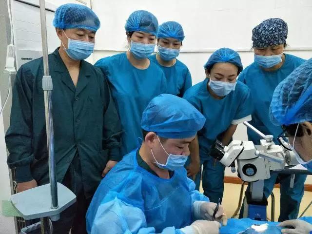 眼科专家傅昌博和市一院张红、晏燕、曹振朗等专家在手术中
