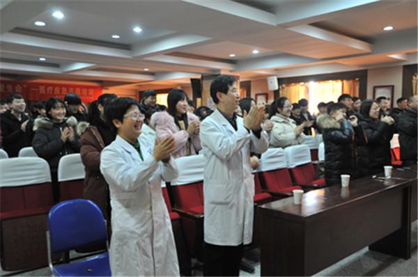 2018年1月6日上午,徐州市中医院康复医学科在医技楼六楼会议室举办九州职业技术学院中职部2017级康复班第一次见习座谈会,市中医院门诊部王旭波主任、康复医学科张冰副主任、九州职业技术学院席如秀主任及100名2017级康复治疗专业的同学参加此次座谈会。