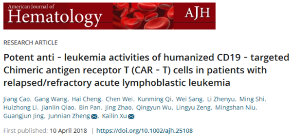 近日,由徐开林教授带领的徐医附院CAR-T治疗中心在国际著名血液学杂志《American Journal of hematology》发表了国内首个人源化CD19 CAR-T(hCART19s)治疗难治、复发急性淋巴细胞白血病的研究成果。该研究入组了18例晚期急性淋巴细胞白血病患者,其中有15例既往未接受过CAR-T治疗的患者,经过一次hCART19s治疗,有92.9%的患者获得了完全缓解;而另外3例为经过鼠源 CD19 CAR-T 治疗缓解后复发,且再次输注鼠源CAR-T无效的白血病患者,经过hCART19s治疗,有33.3%的患者获得了完全缓解。其治疗相关的重度细胞因子释放综合征发生率为23.5%,神经毒性发生率仅为5.6%。该研究成果填补了我国人源化CAR-T治疗急性淋巴细胞白血病的空白。