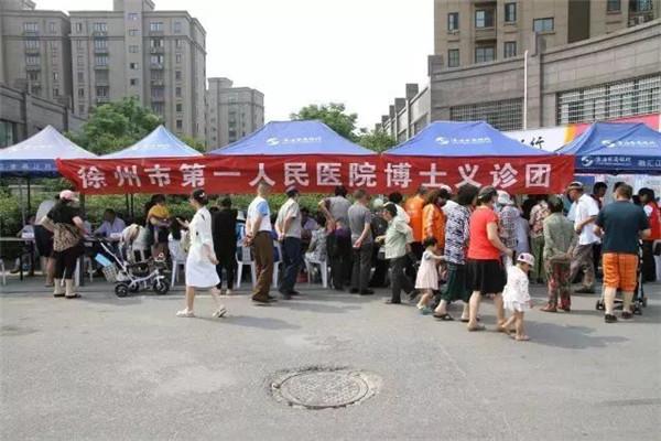 6月8日,徐州市第一人民医院联合淮海农商银行、共青团鼓楼区委于九里新苑社区举办健康徐州社区行活动,为社区居民献爱心送健康。