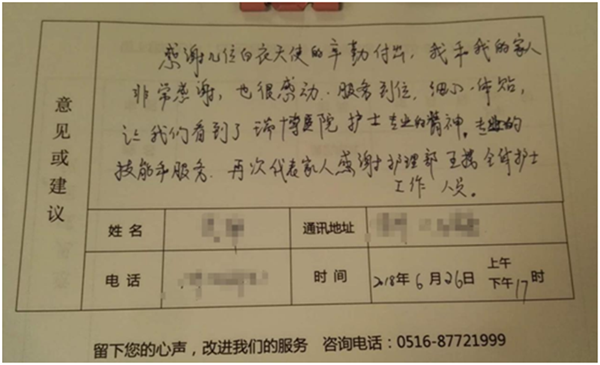 收到武女士的感谢,徐州瑞博医院的医护人员也很开心,很感动。他们真诚真心的服务得到了认可。