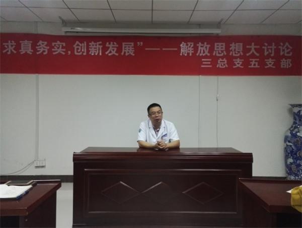 为深入学习贯彻习近平新时代中国特色社会主义思想和党的十九大精神,全面落实习近平总书记关于进一步解放思想、将改革开放进行到底的最新要求以及医院党委、总支关于解放思想大讨论的工作部署与要求,三总支五支部于6月27日在急救中心会议室开展“求真务实、创新发展”解放思想大讨论活动,会议由支部书记燕宪亮教授主持,五支部70名党员和非党员的职工参加了此次大讨论活动,总支书记马秋芳同志应邀参加。