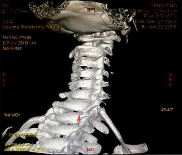 2018-06-08,在局部麻醉联合静脉麻醉下,采用K-hole技术经颈椎后路行内镜下C7-T1椎间盘突出髓核摘除+神经根减压术。手术应用影像学定位、可视内镜、动力磨钻等技术,精细操作,手术时长仅1个多小时。