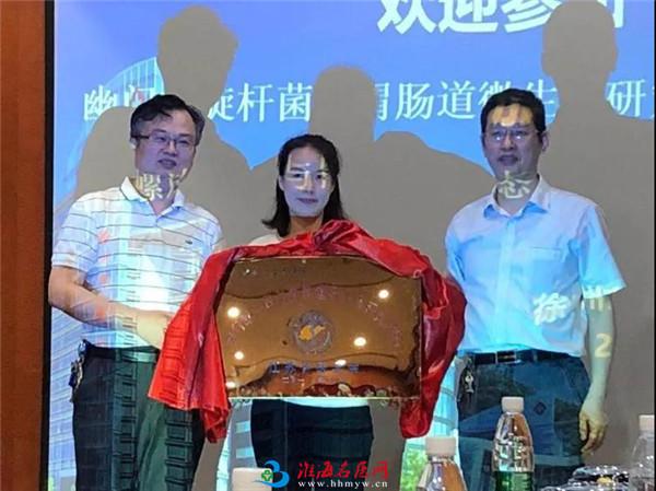 市一院医务处处长沈鹏与张国新教授为“幽门螺杆菌与胃肠道微生态研究基地”揭牌。