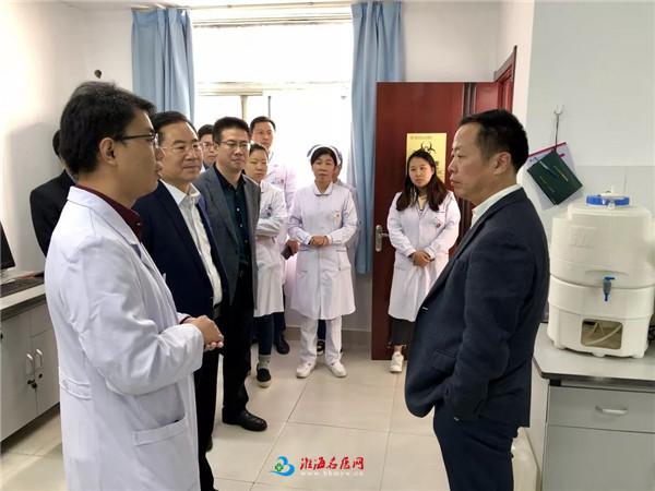 夏有兵书记一行在徐州市第一人民医院领导及相关职能科室负责人的陪同下实地走访了徐州市第一人民医院儿科病房、分子生物学实验室、细胞/组织培养室等地,给予了徐州市第一人民医院附属医院建设工作充分的肯定。