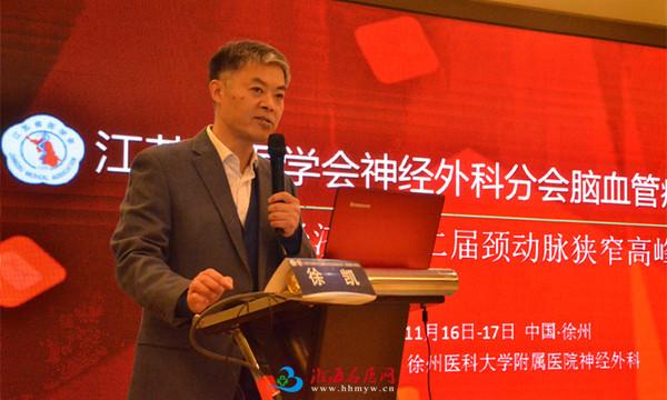 2018年11月17日,由徐医附院神经外科主办的江苏省医学会神经外科分会脑血管病学组会议暨淮海经济区第二届颈动脉狭窄高峰论坛在开元名都大酒店召开。国内、省内知名专家汇聚彭城,共同探讨脑血管病前沿诊疗技术和最新研究成果。会上同时举行了“中华医学会神经外科分会苏北地区中青年医师培训中心”落户徐医附院神经外科揭牌仪式。