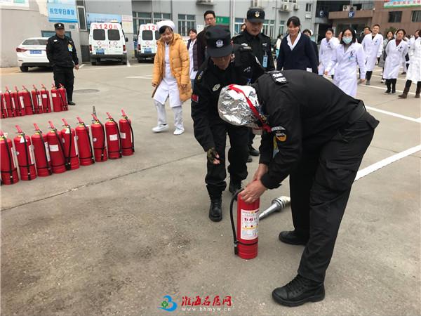 本次演练分连接消防水带接力、正确使用防毒面具、使用灭火器扑灭火点等实战科目。演练前,保卫科消防人员讲解消防安全常识、手提式干粉灭火器的使用方法、技能演练注意事,并进行了示范演示。