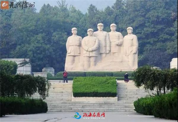 重走淮海主战场——蔡洼定大计淮塔园区内,伫立着一座淮海战役总前委群雕。雕像共由70块花岗岩石料雕刻而成,背依青山,面东朝阳。整个群雕气势非凡,形象逼真。