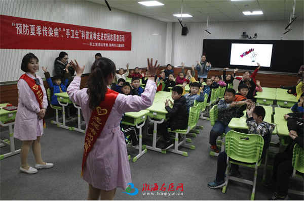 3月22日下午,我院团委联合儿保科、心内科、共计10名志愿者走进三十四中附小开展“预防夏季传染病”、“手卫生”科普宣教志愿者活动,50余位师生参加活动。