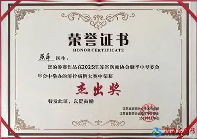 徐州市中心医院张洋医生获江苏省脑卒中溶栓病例大赛“杰出奖”